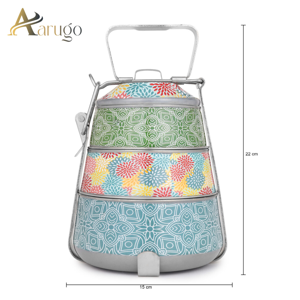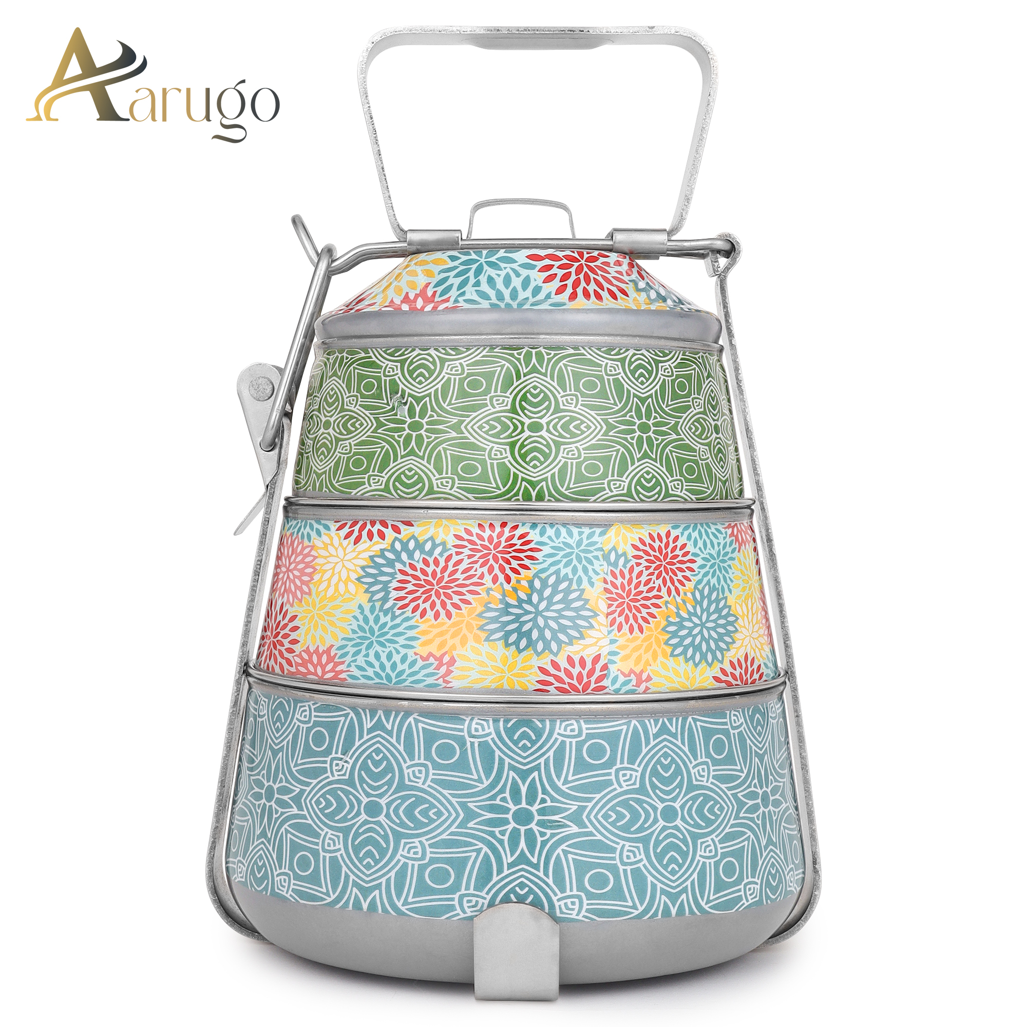 Enjoy fresh, homemade meals on the go with the Aarugo Stainless Steel 3-Tier Pyramid Tiffin Box—a stylish, traditional, and eco-conscious choice for everyday use!