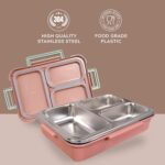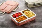Upgrade your mealtime with the Erigo 3 Compartment Stainless Steel Lunch Box, thoughtfully designed for both adults and kids. This smart and durable bento-style tiffin box features three divided sections to keep your food organized, fresh, and mess-free.