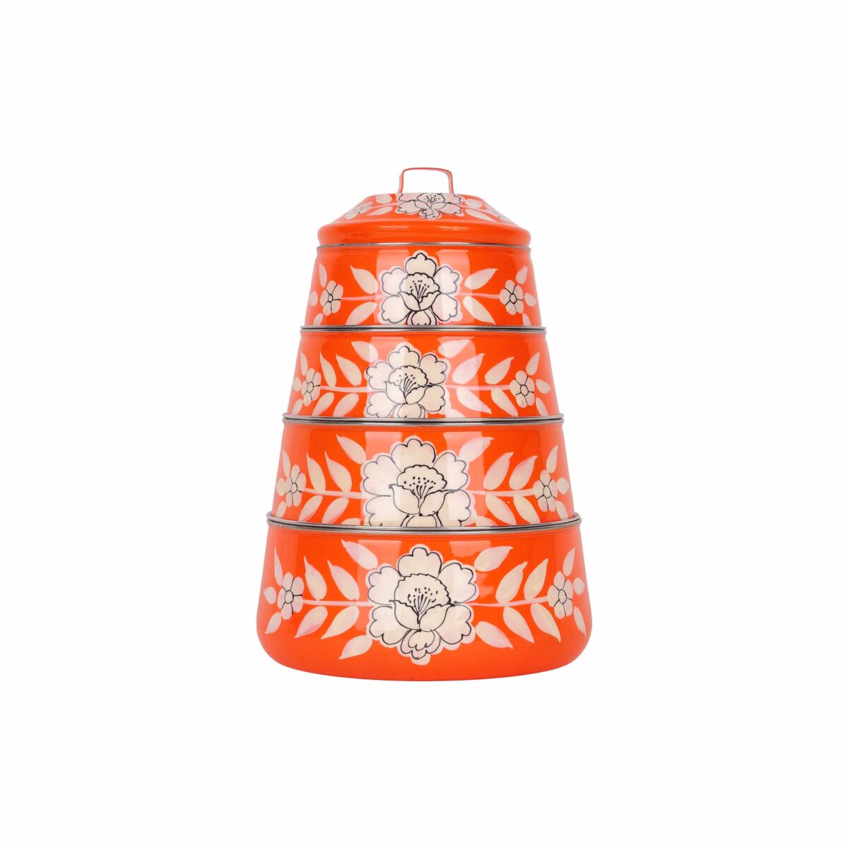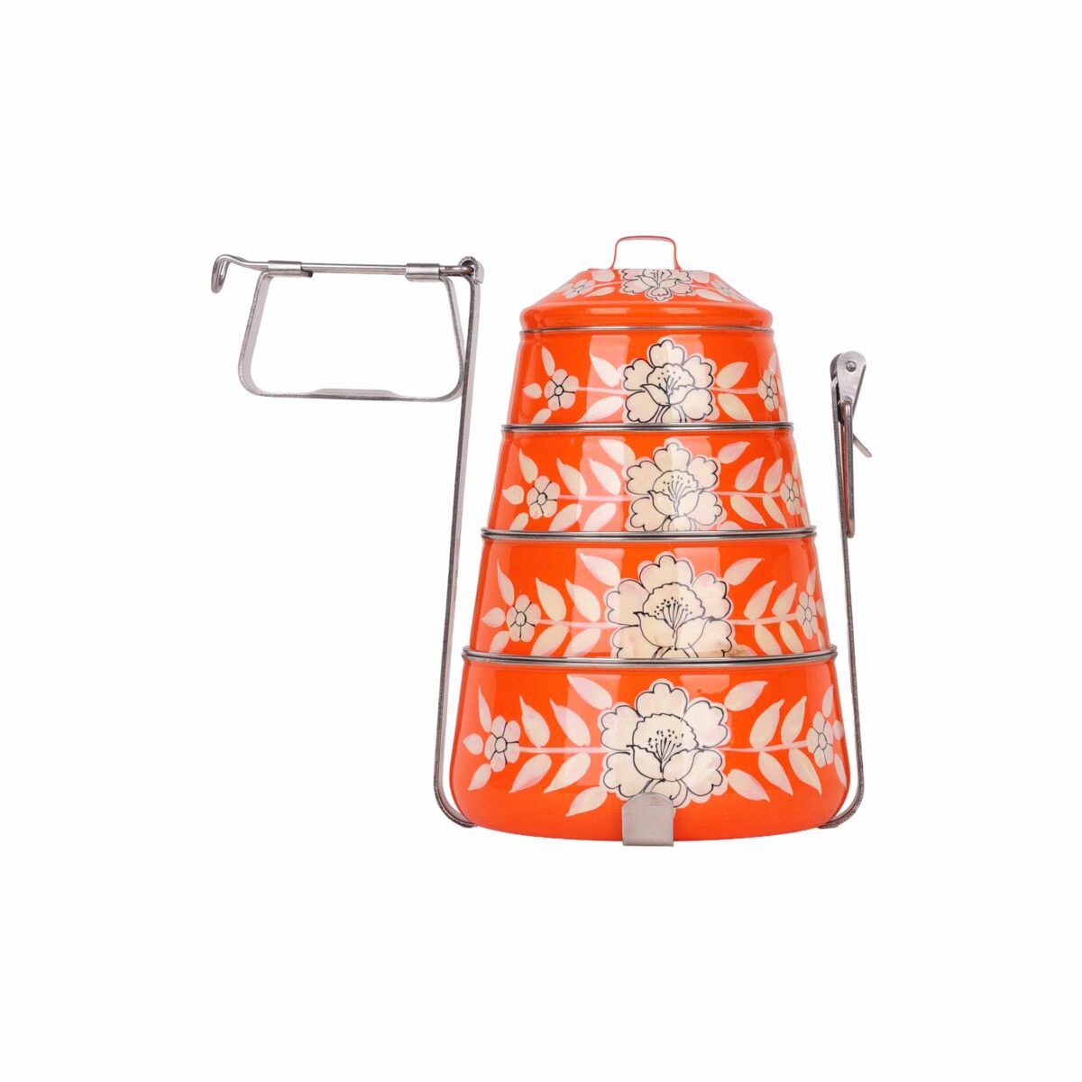 Experience the perfect blend of tradition and functionality with the Aarugo Stainless Steel 4-Container Pyramid Tiffin Box, designed in a vibrant orange finish. Crafted from 100% food-grade stainless steel, this uniquely shaped pyramid-style lunch box is perfect for carrying multiple dishes without mixing them. Ideal for office, school, travel, and picnics, it keeps your food fresh, secure, and leak-free.