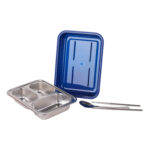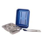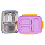 Built with a durable food-grade stainless steel interior and a secure 4-side locking plastic lid, this box ensures leak-proof storage for dry or semi-wet food. It’s compact, lightweight, and easy to carry – ideal for school bags, picnics, or day trips.