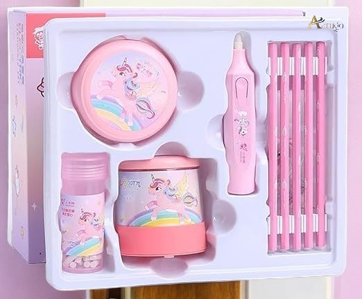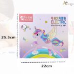 Introduce a touch of fun and utility with our Electric Stationery Set – Kawaii Unicorn Edition, perfect for kids: